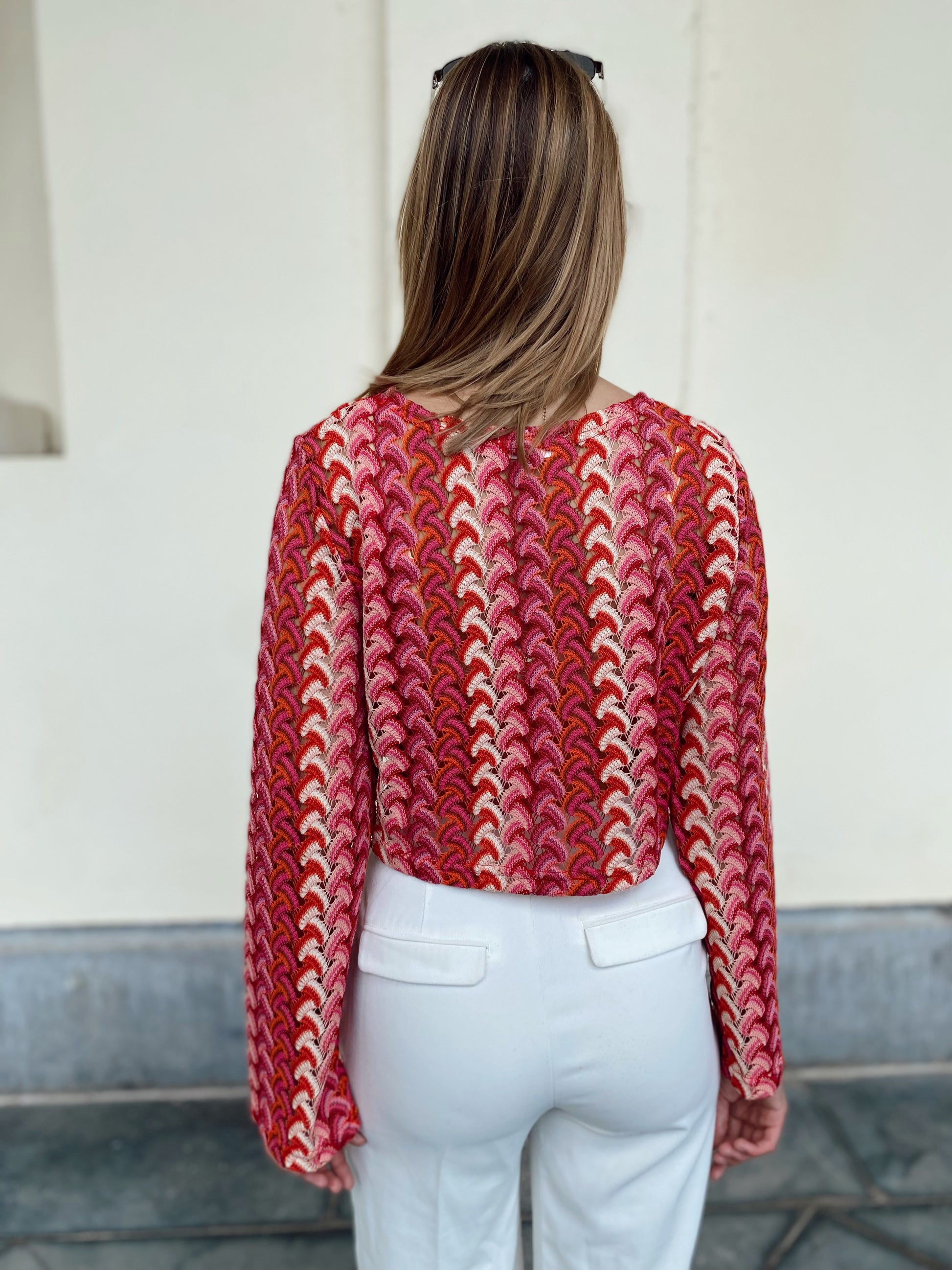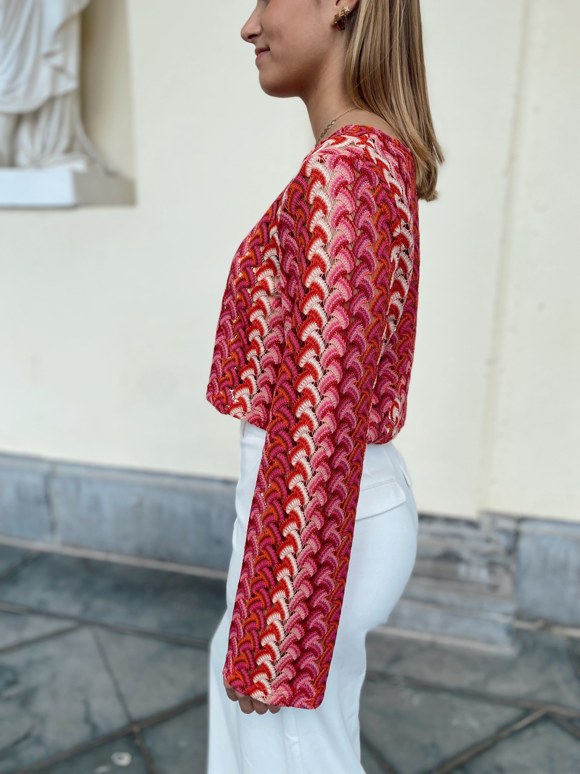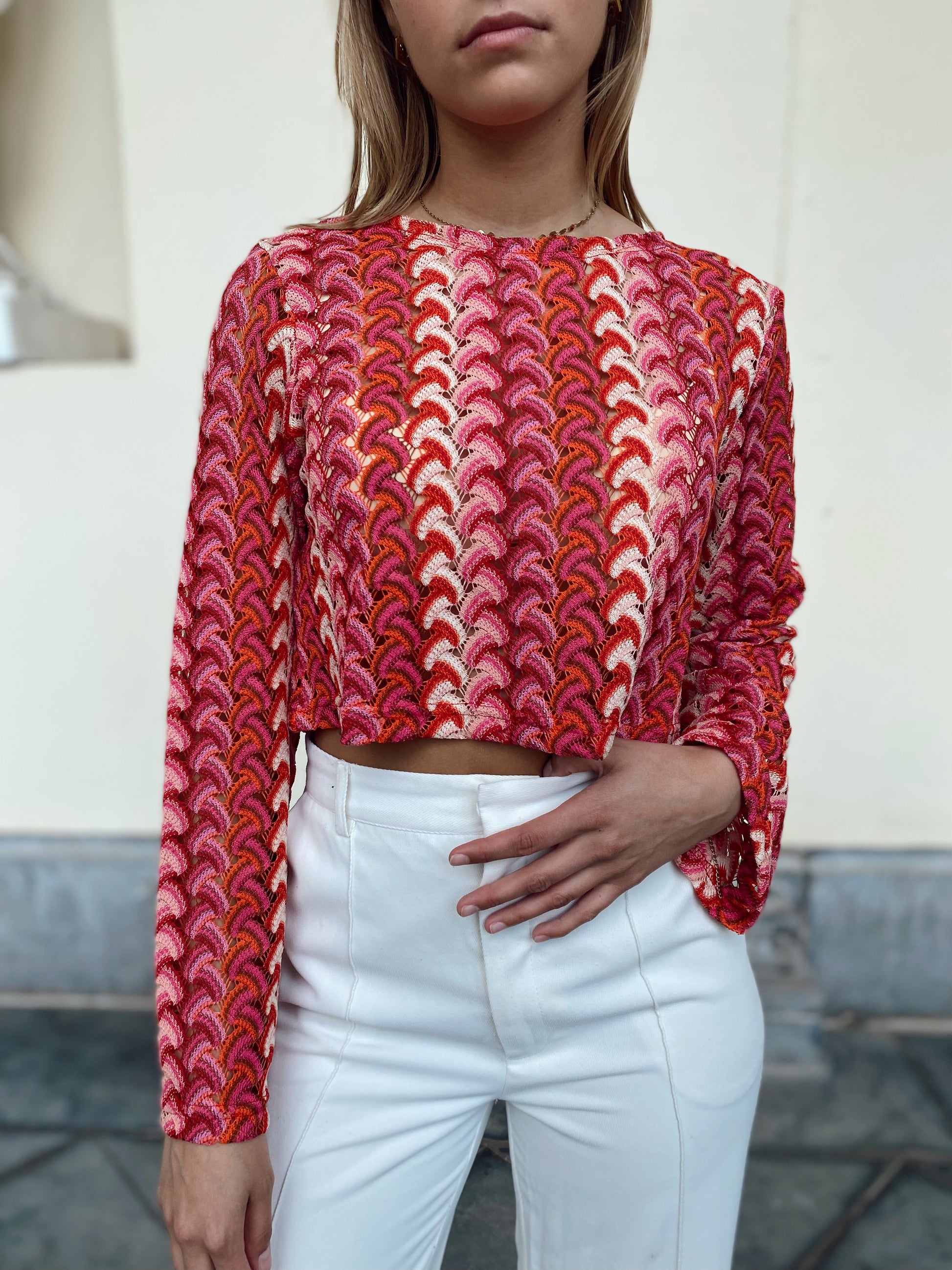 • Détails : Haut crop longues manches en crochet avec manches évasées.
