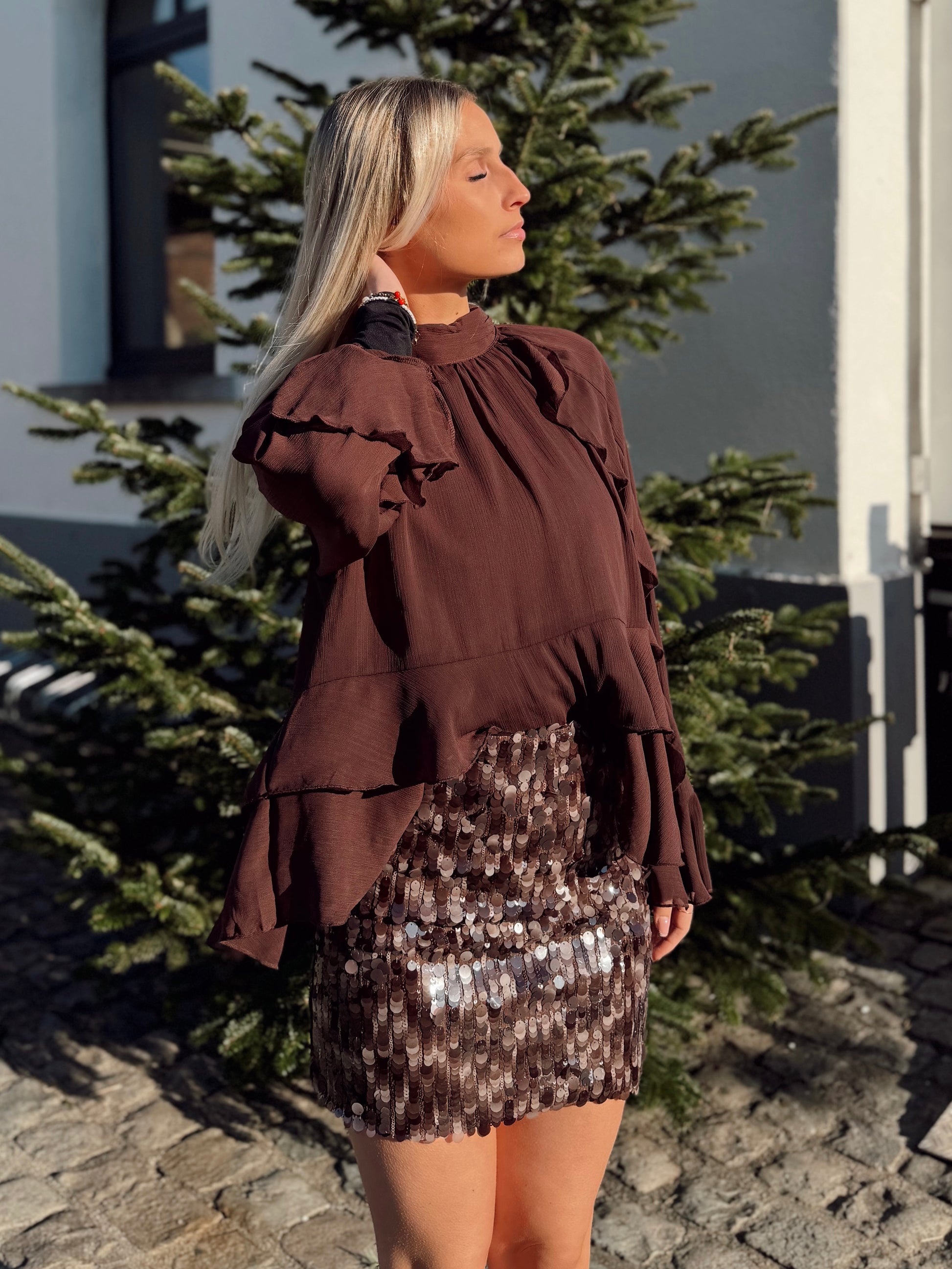 - Idée de tenue : Elle sera la pièce maitresse de votre look festif, elle s'associe parfaitement avec notre blouse chocolat comme sur la photo.